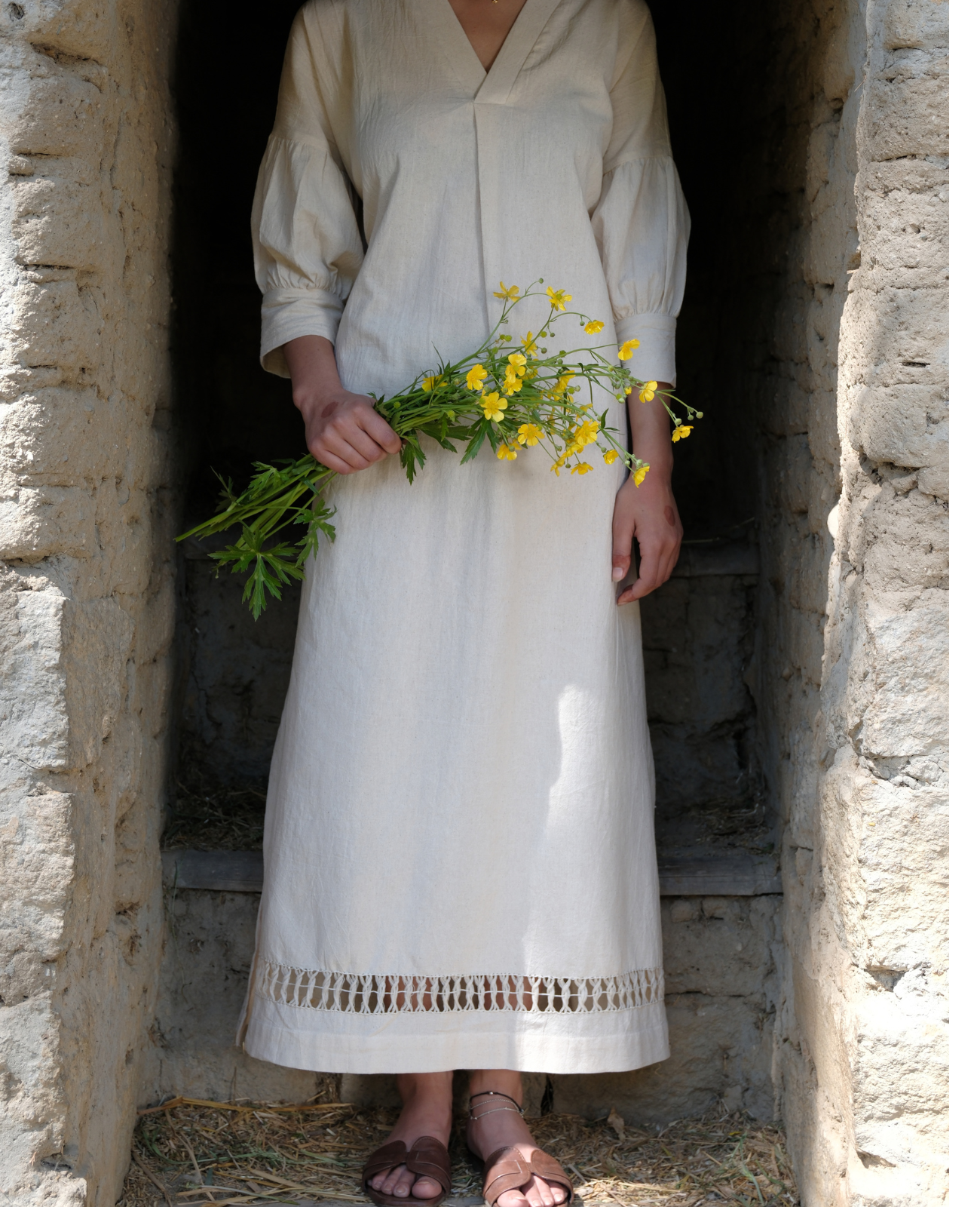Aroha Soléa - White Handcrafted Summer Dress in Cotton-Hemp